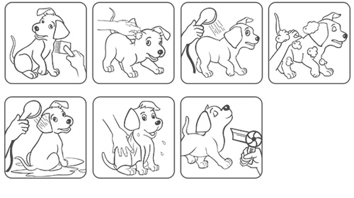 接下来,我们再看看如何给爱犬洗澡,这里有七个洗澡的步骤: